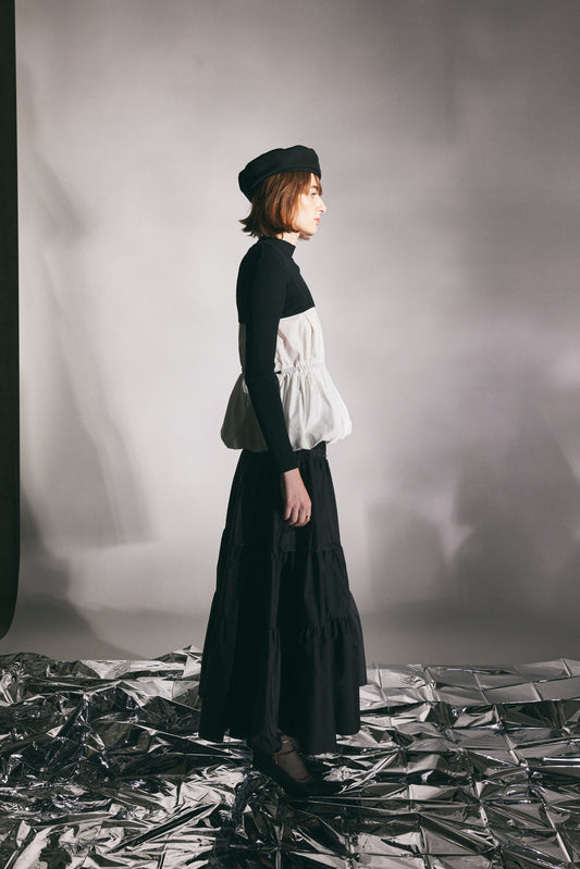 Photographer RYO OGAWAHair Make-up HIROYASU ISHIDAStylist TAKAHIRO HARADAModel COSIMAVolume Sleeve Tops¥19,800- (tax in)Random Flare Hem Skirt¥22,000- (tax in)Piping Ruffle Dress¥28,600- (tax in) Smocking Pullover¥22,000- (tax in)